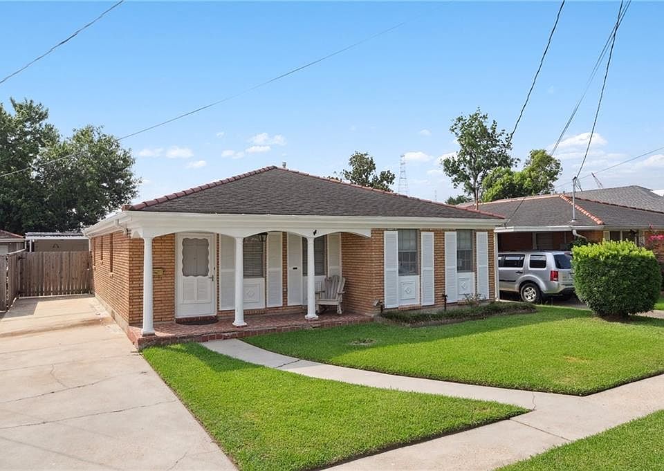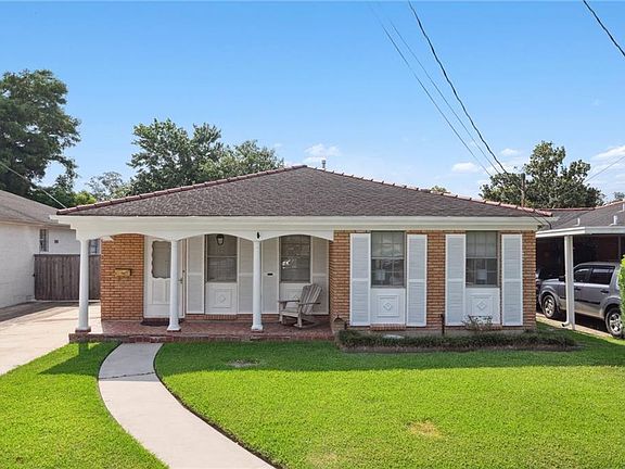 Become only the third owner of this well-maintained home, walking distance to the bike path on the levee and Ochsner's main campus. This charming ranch home features two living spaces and dining spaces, original pocket doors and wood trim door frames throughout, low-maintenance and in great condition terrazzo flooring. Good size bedrooms, primary bedroom with walk-in closet and en-suite bathroom. A wood burning fireplace, with gas line for lighting, serves as a great focal point for the entertaining space, with a spacious laundry room adjacent. New AC system, and updated plumbing and electrical. Original wood French doors opens up to the spacious backyard. The long driveway runs the length of the lot, with carport and security gate, can easily fit a boat or up to four cars. X flood zone.