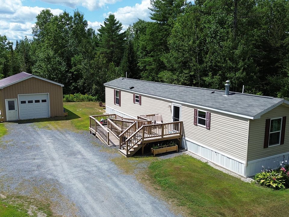 Very nice 2 bedroom, 2 bathroom home with a detached garage nestled on a 9.49 acre surveyed lot in the Norridgewock countryside. This home features an open concept kitchen, dining, and living area, and a separate laundry space. The main bedroom on one end of the home has its own bathroom and a large closet. The other end of the home has the second bathroom and guest bedroom. A detached garage provides plenty of storage space and the 13k on demand generator has plenty of power to run everything in the home. The front deck offers a ramp and the rear deck has plenty of room to sit and relax. This lot with its long road frontage, gives you the ability to sell off a portion of it if you choose to do so. Leave right from your driveway to access the ATV trails and the snowmobile trails are close by. This home is located in a nice rural location yet only a short drive to in town Norridgewock for shopping, restaurants and the public boat launch for the Kennebec River.