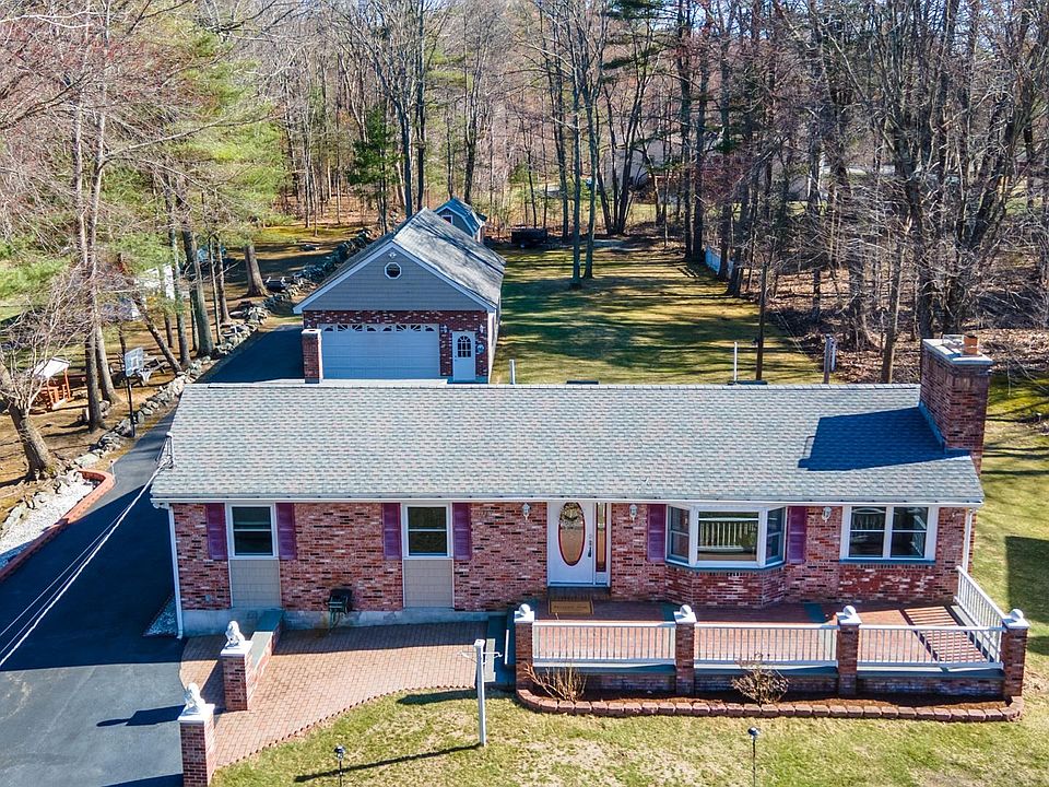 OFFER DEADLINE-Please submit any and all offers by TUES 4/18 BY 10 AM. Nestled back off the road, this charming 3 bed, 2 bath ranch has been lovingly maintained and offers over 2000 Sq Ft of living space. The cathedral ceiling in the kitchen eat-in dining area creates an open, airy feel. Updates include granite counters, white cabinets, and stainless appliances. The living room is bathed in natural light thanks to the two large oversized windows and the gas fireplace provides warmth and coziness during the colder months. The 3 bedrooms and a full bath complete the first level. The open staircase leads you to the finished basement. You will find a ¾ bath/laundry room, family room, wood-burning stove, utility room and walk-out access. The central AC is a plus, and the newer roof adds peace of mind for years to come. The detached 24x38 spacious garage with open storage space above and an oversized 2-section shed provides plenty of space for your vehicles, tools, and outdoor equipment. The large level backyard is perfect for entertaining and outdoor activities. The beautiful brick facade adds to the home's curb appeal. Whether you're upsizing or looking for that one-level living, this property is an amazing opportunity that you don't want to miss. Close to Rte’s 93, 213, and 97, the Salem rail trail, Tuscan Village, shopping, restaurants, and more. A short drive to Boston, the beach or the mountains. Call today to schedule a showing and make this beautiful ranch home yours.