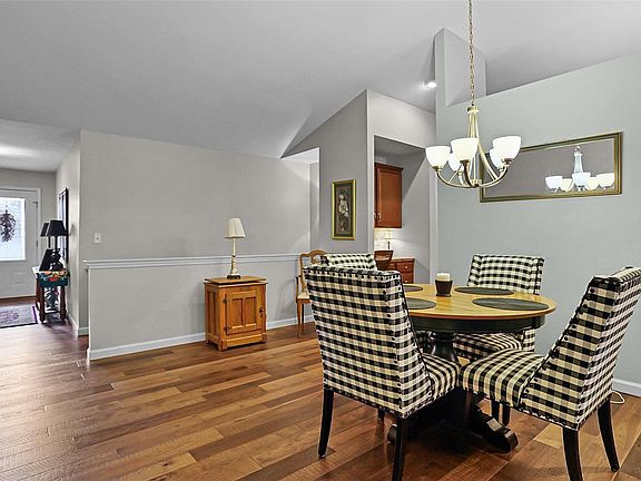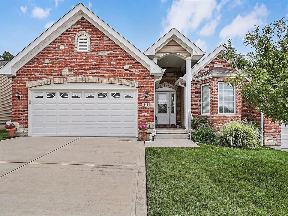 Beautifully updated and maintained 6 year old Brick detached Ranch Villa in a great South County Location. Open floor plan with vaulted ceiling great room, dining room and updated Kitchen and breakfast room. All new wood flooring throughout the home in the last 3 years. Gas FP in great room, bay windows and kitchen with 42" cabinets with crown, plenty of counter and cabinet space and stainless appliances and planning desk area. Main floor laundry off the kitchen leads into the 2 car garage. Master suite with walk in closet, dual vanity bath with separate tub and shower. Another front bedroom with bay window and plenty of closet space. Unfinished LL with egress window and roughed in bath waiting to be finished. Nice patio off the back of the home backing to trees. Low HOA fees and a great community feel close to highways, shopping and restaurants. Location: Detached