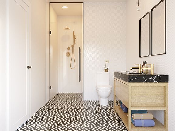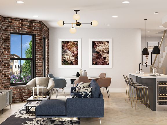 There’s absolutely nothing boring about 114 Booraem (pronounced BOR-?m). Turning heads on a tree-lined street in The Heights, these two newly renovated units are spacious, minimalist and modern with rustic textures and warm undertones. Designers kept it interesting with choices like herringbone white oak flooring and black matte pendant lighting, plus exposed brick and light-flooded bay windows spread through both high and low traffic areas of the home. The kitchen sets sophisticated standards with vertical wood grain upper cabinets, dark grey lowers, white-vein quartz countertops with grey-tinted glass backsplash, and top of the line stainless appliances including the must-have wine fridge.