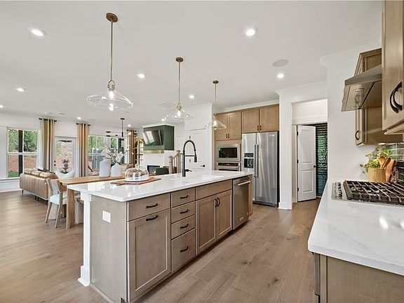 Brand new Exquisite Model Home with more than $160,000 upgrades! This stunning show home is sure to impress with its designer features, including tile and shiplap accent walls, color bursts, a painted brick fireplace, and floor-to-ceiling window treatments. Surround sound speakers and room-by-room volume control make it easy to entertain or unwind. A gourmet kitchen complete with built-in wall micro/oven, gas cooktop, and stainless steel vent hood makes it a breeze to cook a meal. Kitchen island easily seats four with an open view from the kitchen into the living area, where you will find wall-to-wall windows and a painted brick fireplace. A covered back porch provides the perfect setting for relaxation and protection from the sun on summer days. Upstairs, a multi-use loft area creates welcome separation from each bedroom and allows for additional function. The dedicated laundry room is enhanced with a built-in sink and cabinetry. Washer and dryer included. The Primary Suite features separate vanities, a large walk-in closet, and a heavy glass shower with a rain shower head and tile bench seat. This gorgeous end unit is just a short walk away from the community fire pit and the sidewalk trail taking you through Technology Park. In the heart of Johns Creek, this home is walkable to Medley and Creekside Park. Excellent Northview school district! Live in a luxury home while only paying a very small portion of the costs. This home is worth every penny you pay, and even more! Come see to believe! lawn care included