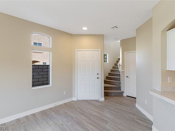 Tranquil, low-maintenance living awaits at this fully renovated 2-story townhome, nestled at the end of Muirfield—a gated, single-street community in Henderson boasting scenic frontage on The Legacy Golf Club Recent renovations include new flooring, countertops, appliances, & more! Enjoy stunning views of the 5th green & fairway from the back patio or upper-level primary bedroom w/balcony, dual vanities, & 2 walk-in closets. Whether you’re having breakfast at the kitchen passthrough, relaxing beside the fireplace in the living room, or gathering in the dining room, you’re sure to feel at home here. Located adjacent to an easement, this property enjoys an added level of privacy on one side. The Legacy Golf Club offers bookable tee times, annual golf plans, & various golf packages. This property is less than 1 mile from the 215 freeway, providing easy access to all the entertainment, fine & casual dining, & exclusive retail shopping that the Las Vegas valley has to offer.