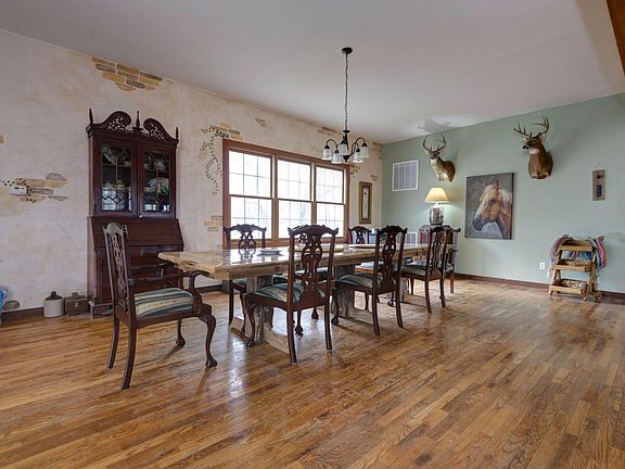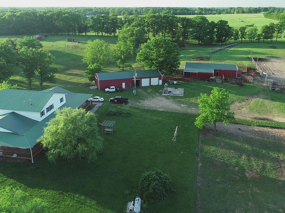 On this ranch they enjoy simple living, hard work, respect and caring, ropin' and ridin' and Happy Trails. Welcome to near 80 acres of country paradise, or with 40+/- acres for $374,000. Very spacious home with all large rooms, living and storage areas. There is room for everyone and everything. No restrictions. Have raised 225 sheep and lambs, 19 horses, cattle, and a happy family. There are 5 ponds, 15 paddocks+/- a commodity building with a 23 x 80 middle run, 10'' concrete floors. Horse barn is 30 x 70 with 8 side stalls,tack room, riding arena and pens. Centrally located is the 30 x 80 workshop, and 3 car garage Covered Deck on 3 sides with front deck of home is est 10 x 105'. Home has zoned CH/AC, pellet stove, beautiful hardwood floors, tile and artistic murals. Full basement.