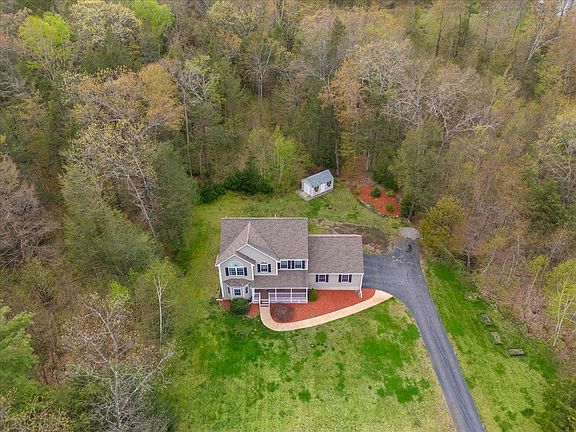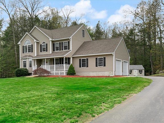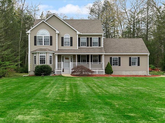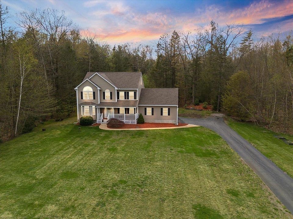 Beautiful Colonial on a 2.02 acre lot nicely set back off the road. This spacious home with welcoming farmers porch is move in ready and features 3 bedrooms and 2 1/2 bathrooms. Beautiful cabinetry in the kitchen with stainless appliances and granite countertops. Light and bright Dining room, Living room with gas fireplace, breakfast nook and a half bath with laundry on the main floor with direct access to the 2 car garage. A 3 season room off the kitchen leads into the private backyard. Upstairs is a full bathroom and 3 bedrooms including the master with an ensuite bathroom with a walk in shower. One more level up is the partially finished attic which is currently set up as a media room. Media equipment is staying for the new owners. This home offers space for additional finishing either in the attic or the basement. Portable generator ready, Central AC, irrigation system, whole house fire sprinkler system and more!