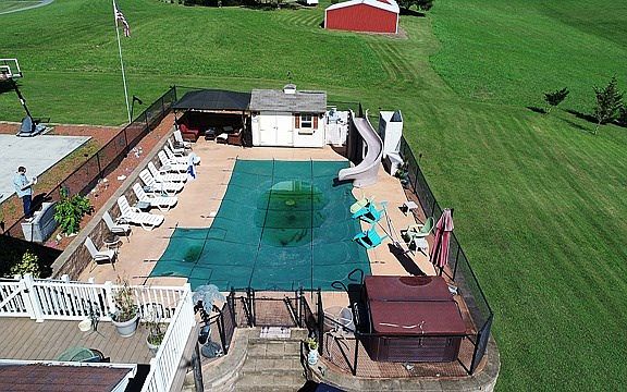 Brick ranch with 14 rooms. 3 bed/4 baths. Oversized Master Bedroom suite with fireplace. Sunroom on main and lower levels. Basement includes theater room, family room with office and 3 bonus rooms. Basement heated by free standing propane fireplace. Double attached garage. 36 x 80 Barn and 10 x 80 shed. Outbuilding. 16 x 32 In ground pool. Sq. ft. lot size est.