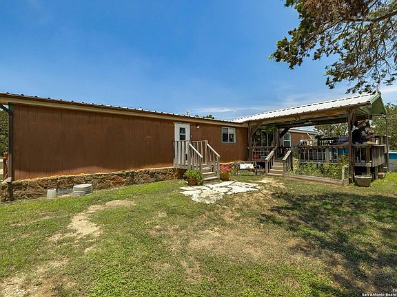 This property offers a comfortable and inviting living experience. This home is perfect for families seeking ample space and functionality. The interior boasts a breakfast bar, ideal for casual dining or entertaining guests, and ceiling fans to ensure comfort throughout the year. The kitchen is equipped with laminate countertops, providing durability and a modern look. A double vanity in the bathroom enhances convenience and style, while the primary bedroom on the main floor offers easy accessibility. The bathroom includes a soaking tub, perfect for relaxation after a long day. The eat-in kitchen provides a cozy space for family meals. The home offers picturesque views of the Hill Country and is surrounded by beautiful trees and woods, creating a serene and private atmosphere. This property combines the charm of country living with the convenience of modern amenities, making it an ideal choice for those looking to enjoy the best of both worlds.