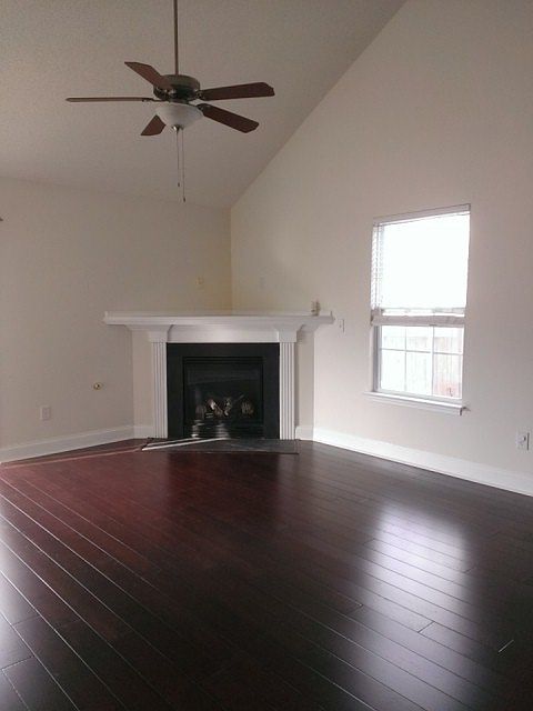 Qualifies for 100% USDA Financing!!! Freshly painted common areas, living room, dining room. Huge owner's bedroom with garden tub, separate shower, double vanity, and large walk-in closet. Sliding glass doors lead to nice deck in back that is large enough for grilling and entertaining. Privacy fence. Quiet neighborhood with community pool. HoA fee covers lawn service for front yards, pool, and annual power washing of all houses. Minutes to shopping and interstate. Ceiling fans in all bedrooms and living room. Cozy gas log fireplace in living room. Large kitchen. Hardwoods in great room and main floor hallways. Move in ready.