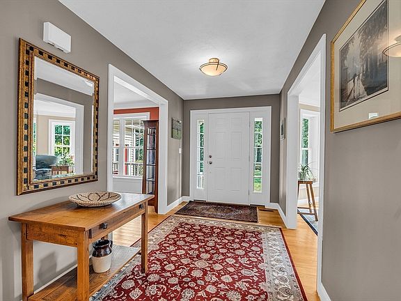 Prepare to fall in love with this TRUE CUSTOM designed home set on a gorgeous level lot* Quiet country road in the highly desirable town of Hudson* Welcoming front porch to spend quiet summer evenings overlooking manicured grounds*Maintenance free siding & windows, custom deck & eye catching patio for outdoor enjoyment*Terrific front foyer invites you into this beautiful space, very open flr plan w/high end kitchen cabinetry/appliances/granite/backsplash & island which opens to family sized great rm w/gas FP*Spacious DR, LR or home office , incredible natural light throughout*Amazing 1st flr primary suite w/oversized bedroom, huge walk-in closet & spectacular bath w/soak tub/double sinks/tiled shower*mudrm from 2 car garage w/laundry & 1/2 bath too* 2nd floor has 3 additional bedrooms, all well proportioned w/large closets plus another full bath*LL combines significant storage area with a REAL workshop & rec room too* Plenty of rm to stretch out & make this your “forever home"
