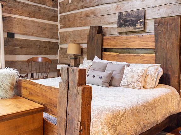 Barnwood Lodge is the large home you need for your next family reunion! With 5 bedrooms, each with its own private bath, plus a detached bunkhouse. This home, including the bunkhouse sleeps 27. This approx. 4,200sq.ft lakefront lodge on 2.3 acres has been built from 2 authentic 1800s log cabins. Completely renovated in 2016 with lovingly reclaimed original wood and modernized with stained glass elements, gorgeous light fixtures and hand crafted bathrooms with all new plumbing and electrical. The cabin's large modern kitchen has been upgraded with quartz countertops and beautiful cabinetry. Two gas fireplaces in the home are the perfect spots to end your day.
