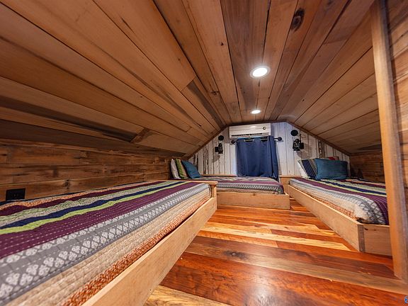Barnwood Lodge is the large home you need for your next family reunion! With 5 bedrooms, each with its own private bath, this home sleeps 27 people with plenty of space. This approx. 4,000 square foot lakefront lodge on 2.7 acres has been historically restored from two original 1800s cabins, lovingly reclaimed with original wood, while modernized with stained glass elements, gorgeous light fixtures and hand-crafted bathrooms. The cabin’s large modern kitchen has been upgraded with quartz countertops and beautiful cabinetry. Two gas fireplaces in the home are the perfect spots to relax after a fun filled day.