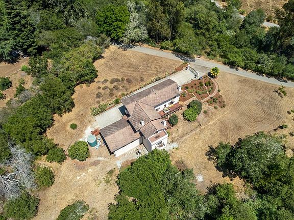 First time on the market! Custom Spanish style home tucked in the Soquel valley on top of gently rolling 2.45 acres with a seasonal creek running through it. Saltillo tile floors, decorative arched doorways, wood beams with intricate details, & beautiful wrought iron fixtures adorn the home throughout. The living room has a fireplace & built-in bookshelves with doors to the outdoor deck. Next to the formal dining room is the updated kitchen that has granite countertops with a gas stovetop & double sinks. An informal dining area with a specially made booth sits adjacent to the kitchen & opens to the cozy family room with fireplace below. All bedrooms are very spacious & have a private balcony, including the ground floor bedroom & upstairs master suite. The property has more than ample storage space with the loft above the attached garage & a large downstairs basement with high ceilings that could make for a great workshop or wine cellar room. Room for horses, ADU, pool, orchard, etc.