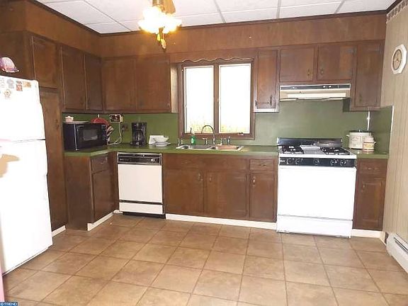 Solid custom built home offers a living room with stained glass window and a dining room. Both have hardwood flooring. The kitchen has a newer gas range, double stainless steel sinks, built-in dishwasher and vinyl flooring. There are two bedrooms and a full bath on this level. Upstairs is an open loft area large enough for a pool table. Three additional bedrooms are also located on the second level. The basement is full and has an entrance from the kitchen and also from the rear yard. Laundry facilities are located in the basement along with a large porcelain wash tub and lots of storage space. The sunporch is enclosed and has lots of sunny windows. A driveway runs along one side of the house and leads to a detatched one car garage. This home is in good, well cared for condition in need of a little cosmetic work. Don't miss this one - it is a lot of house for the money.