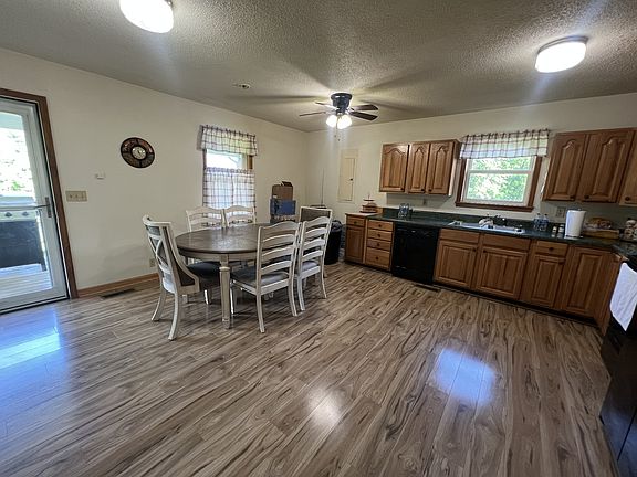 Great mini farm. Bring the animals & the kiddos. 3 BR 2 bath one owner home with large eat-in country kitchen, Storm shelter room in basement area, covered front porch, 8x49 covered back deck for entertaining, 2 car carport, barn with attached shed with concrete floor, & large shop. All property is fenced & pond on the property.