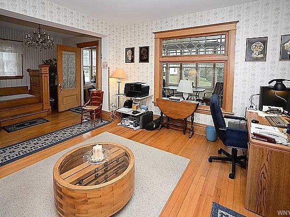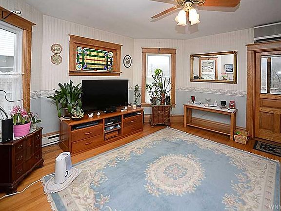 NEW PRICE! BEAUTIFUL NATURAL WOODWORK AND FLOORING WELCOMES YOU INTO THIS ROOMY 4 BEDROOM, 1-1/2 BATH HOME OVERLOOKING THE ALLEGANY RIVER. RELAX ON THE GLASS ENCLOSED FRONT SUNPORCH WITH NEW WINDOWS OR THE SCREENED IN BACK PORCH. THE NEWER EAT-IN KITCHEN FEATURES OAK CABINETRY AND TILE COUNTERS. YOU COULD HAVE A FORMAL DINING ROOM AS WELL, RATHER THAN THE TWO LIVING ROOMS. THE GAS FIREPLACE AND STAINED GLASS ENHANCE THE CHARACTER OF THIS HOME. THE WALK-UP ATTIC COULD ALSO BE FINISHED INTO ADDITIONAL LIVING SPACE. THE OWNERS ARE SIZING DOWN AND ARE MOTIVATED TO SELL THIS SPACIOUS HOME.