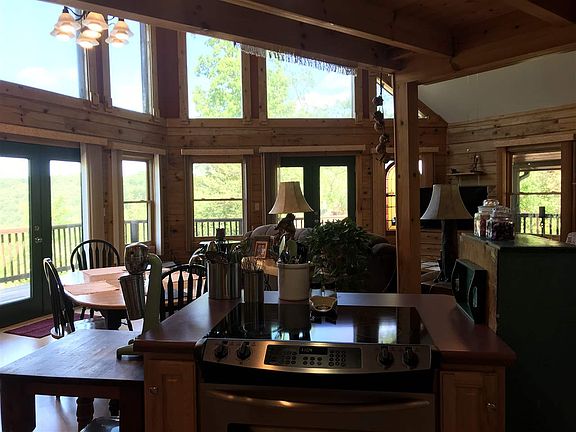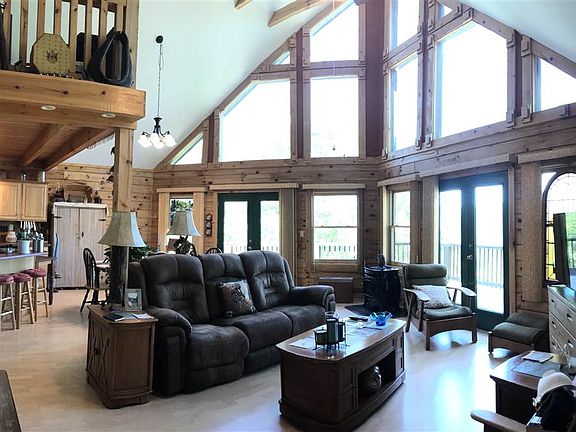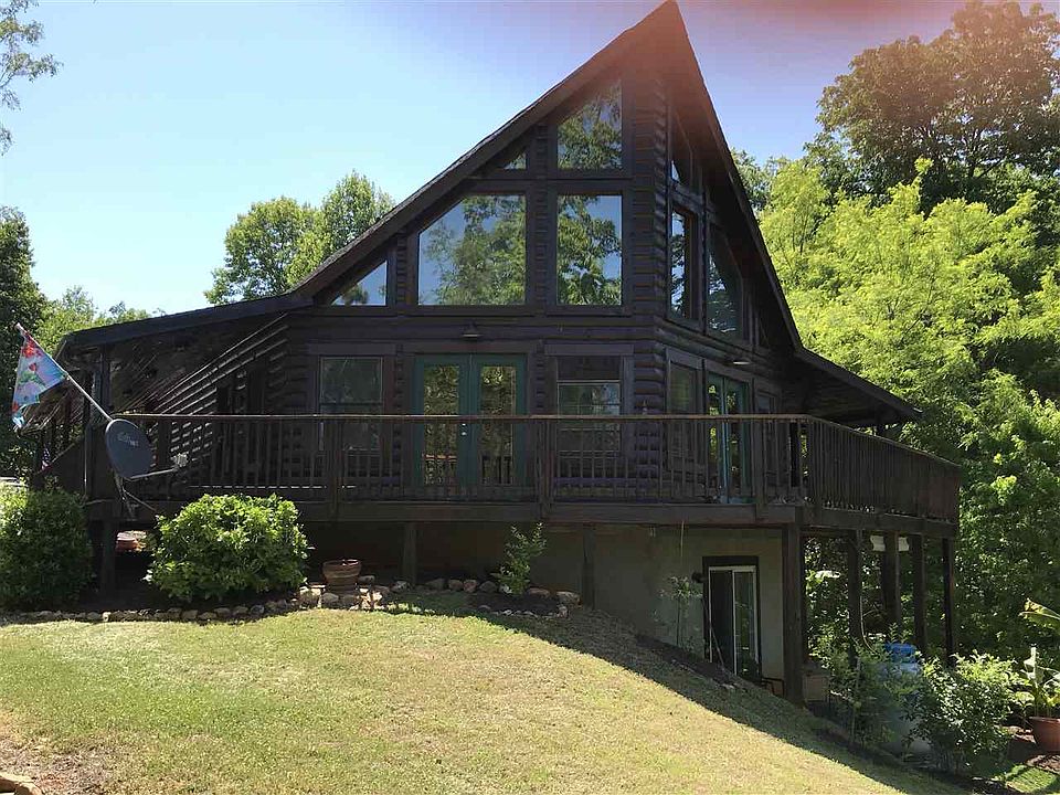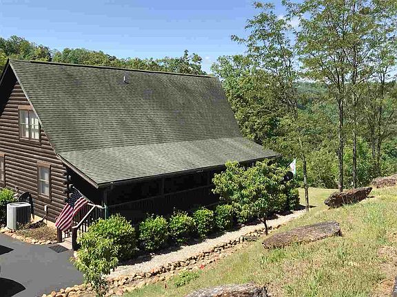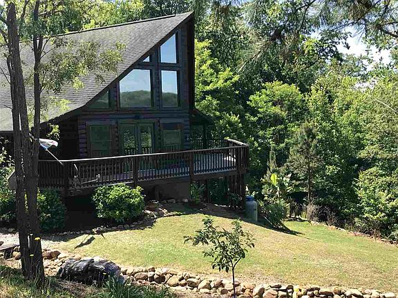 Breath taking views surround you with 18 wall to ceiling windows and 2 french doors in this beautiful mountain cabin! After you get over the "show" at the windows you will notice this cabin has an open floor plan for the kitchen, living room and dining room. You can see the beautiful blue ridge mountain from almost any angle! At night you can enjoy the stars and possible meteors and satellites . The kitchen has ample storage space including a pantry with a brand new barn door. On the main floor you will also find two bedrooms, a full bath, and a laundry room. Upstairs a small loft welcomes you to come sit and enjoy the view from up there. There is also another bedroom as well as a full bath. Once outside you may not want to go back in! The wrap around porch gives you many choices of seating! You can sit in the covered areas or right out in the sunshine. Either way you will be able to take in the mountain view! Because you will own 7.61 acres you can keep the view from being disrupted by topping off the trees when needed. Speaking of trees - this property is blessed with 3 apple trees, 2 peach trees, 1 chestnut tree, some banana trees and 6 blue berry bushes! In the basement you will find AMPLE space for storage or a workshop! It is even plumbed for another bath! Exiting by way of the basement walkout will lead you to a small sitting area to again enjoy nature and the mountains. The present owners have helped in beautifying the lot by adding gorgeous landscaping! Come check this beauty out!