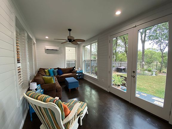 This impressive 4 bedroom, 2.5 bathroom home in desirable Herff Ranch backs to the Cibolo Nature Center and offers optimal privacy. Beautiful concrete stained floors sweep across a thoughtful, open floor plan with beadboard accent walls. Double french doors lead to a stylish, sun-filled office with a built-in desk and cabinetry. The spacious living room embraces a wood-burning fireplace and Jalousie windows that peer into a dreamy sun-room. The gourmet kitchen, equipped with crisp white cabinetry, sparkling granite countertops, stainless steel appliances, glass pendant lighting, and an expansive middle island, is a chef's dream come true. 2 separate glass doors in the sunroom lead the way to a covered patio within a private fenced backyard. Upstairs you will find wood floors expand into a bonus living area and sizable bedrooms. The primary bedroom feels like a retreat with a spa-like en-suite bathroom complete with dual vanities, vessel sinks, a soaking tub, a separate shower, glass block windows, and a lofty walk-in closet. Other highlights include a laundry room, an oversized 2 car garage, and a fire pit in the backyard. This home is less than a mile to schools, public transportation, freeway access, a community pool, and more.