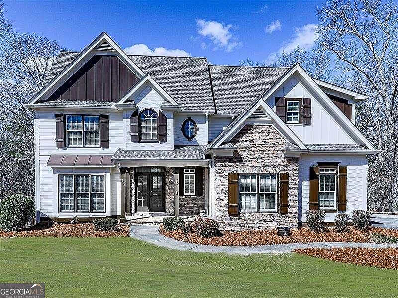 Experience near perfection in this lovely home on 1.16 acres! Most homes in the neighborhood are on estate sized lots. If you're looking for privacy, this is the one! Step onto the covered front porch and open the double front doors to a home that has been completely updated in recent months. The entire first level with new hardwood floors, recently installed, is sure to please. White kitchen cabinetry and beautiful granite counter tops await the home chef! You'll find 20 feet high soaring ceilings in the family room, with a stacked stone fireplace built to the ceiling. The owners suite on the main level with new hardwood floors is waiting for you! Enjoy the screeded in deck, just a few steps away from your bed. How nice to have a cup of coffee in the morning while looking out at nature and the beautiful backyard! There's plenty of room in the owners bath with adjoining walk in closet with an abundance of storage! The massive laundry room on the main level is just off the garage area, and is a perfect "drop-off" area for the family. Upstairs you'll notice the media room, perfect for watching your favorite sporting events. There is a dedicated office, just down the hall, with French doors that welcome you. There is an abundance of natural light in the office, making work a lot more pleasurable. The larger than average guest retreat could surely be used as a second owners suite, as it has an ensuite bath. Find the two other bedrooms upstairs, who enjoy a Jack and Jill bath with separate closets. The full unfinished basement is a blank slate, to do as you please and is plumbed for a bath. Lots of storage for toys, hobbies and lawn equipment. Every door, window and toilet has been replaced in recent months. The front yard has an in-ground sprinkler system for your convenience. HVAC, for both upstairs and downstairs was replaced just a few years ago. The water heater and roof are fairly new, as stated on the Sellers Property Disclosure. Near Lake Allatoona and Victoria Harbor Marina. HOA fee is only 125.00 per year, to help keep up the front entrance.