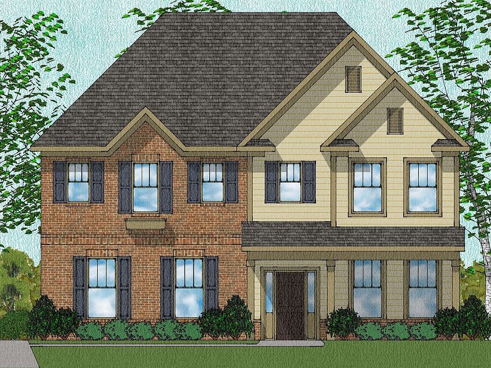 This two-story Palmer plan has four bedrooms and two and one-half baths. This home features a formal dining room which is adjacent to the foyer and accented with a coffered ceiling. The butler's pantry will lead you into the kitchen and breakfast area, which is open to a large family room. The laundry room is conveniently located upstairs, with access to the primary closet. The large primary suite has a luxurious bath and dual closets.