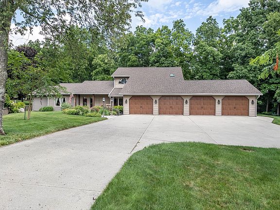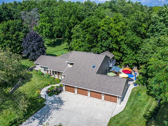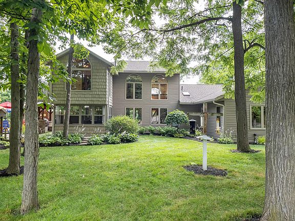 This country/contemporary, trophy residence is the pinnacle of sophistication, discretely located on 1.27 acres on a quiet road with no thru traffic. The serene and secluded retreat has been purposefully crafted with sourced decor and furnishings, encapsulating the space. Envisioned as an entertainer's paradise this estate like property has an open floor plan seamlessly flowing thru all spaces for a coveted indoor/outdoor living. Walls of windows, glass doors & balconies offer the new owners euphoric, water and wooded views. All rear windows overlook the large pond with a one of kind waterfall for your enjoyment and will have all your guests talking. The home greets you with a glamorous front entry & then once inside the home, the 2 story foyer & living rm will captivate you with the walls of glass, open staircase and the 2nd level balcony floating over the living rm. From the living rm you flow into the kitchen & dining area, featuring a Vermont Casting propane stove & offering access to a 3 seasons rm. The gourmet kitchen boasts Legacy, solid hickory cabinets, solid surface counters, expansive eating bar & all the kitchen appliances stay to include the dishwasher, range, microwave & refrigerator. The property offers an outdoor kitchen right out of a magazine with all the bells & whistles. The outdoor kitchen has a Memphis Grill, Green Egg Smoker & pizza oven. There is an outdoor fireplace too! Back inside the home you have an office/study (or possible 4th bedrm) with windows overlooking a nicely landscaped front yard & features custom, built in, hickory cabinetry & bookshelves. There is a family rm, with vaulted ceilings & Vermont Casting wood stove (with wood garage) & completing the main level is a laundry rm & 1 of the 2 owner suites with water views, walk in closet & the owner's bath with a soaking tub, 2 separate sinks & a custom shower that you have to see. The 2nd level has 2 bedrms, 2 full baths & lower level has a rec room. A bonus is the 4 car garage!