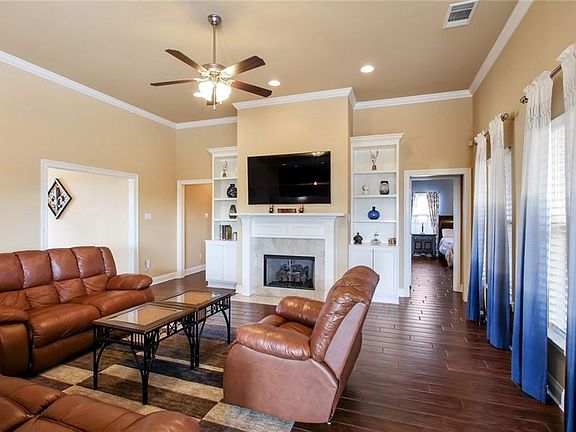 Only 1.5 years YOUNG! This 4 bedroom home with office features an open floor plan that is conducive to entertaining! The sun drenched living space has built-in bookshelves with a fireplace that overlooks the spacious, covered patio. This home offers a large utility room, large walk-in pantry, wood look tile, granite countertops, eat-in breakfast bar, double garage, covered carport and an irrigation system ~ all perfectly situated on a corner lot!--