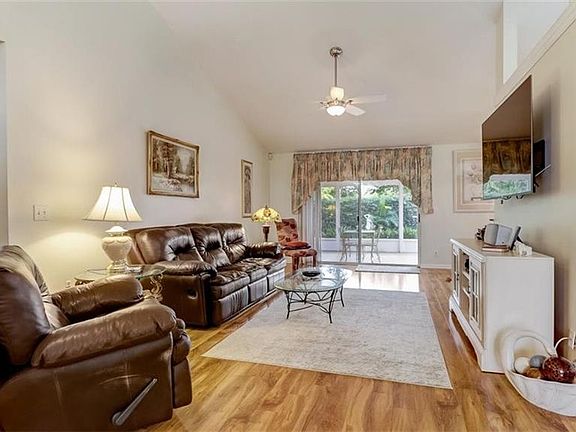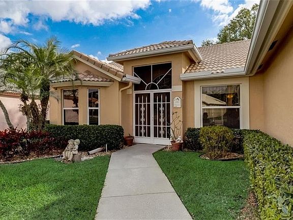 Seller offering a $5,000 flooring credit! Welcome to the community of River Bridge! Centrally located to shopping, dining and includes resort style amenities for a low HOA fee of $958/quarter which includes Cable & landscaping. One owner home, freshly painted interior, roof just power washed, upgraded kitchen and updated tile flooring in the kitchen and laundry room. Newer laminate flooring has been installed throughout the rest of the home (one area needs to be replaced). State of the art technology with wifi enabled sprinkler, front door camera and wifi security alarm system. The living room greets you with tons of natural lighting, high ceilings and a split floorplan. Expansive screened in lanai is partially covered and ideal for backyard sunbathing or bbqing. Breakfast area off of the kitchen. Plenty of counter space and cabinetry for the chef in the house! The master suite offers a walk-in closet and attached master bathroom with dual vanities, bathtub and shower stall. Two spacious secondary bedrooms. Laundry room leads to the 2 car garage with tons of storage space! Take a stroll down one of the community walking trails and enjoy the lush mature landscaping. Amenities include clubhouse, two heated swimming pools, spa, kiddie pool, playground, tennis courts & basketball courts.