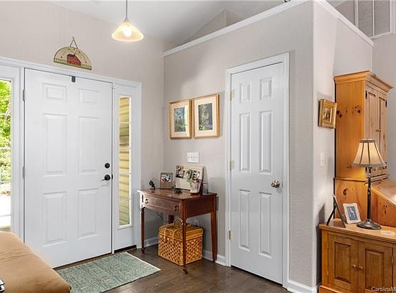 No updates needed!! This one-level home is ready for move-in NOW! Brand new architectural roof (April 2020), HVAC replaced fall 2017, quartz counters in kitchen and baths, all flooring replaced with hand-scraped look pre-finished hardwood, new tile floors in laundry and bathrooms, updated door hardware, easy-up/down window shades, radon mitigation system in place. Bright open great room has gas fireplace and opens to remodeled kitchen with island and adjacent dining area. Spacious master bedroom has tray ceiling and windows looking out to wooded back yard with friendly wildlife, and bath with tiled shower, updated vanity and walk-in closet. Two additional bedrooms are also roomy and bright. Low utility costs, and Northland high speed internet available! Over-size two-car garage has room for golf cart storage, and there's a covered grilling patio off the utility room. Access to all Rumbling Bald Resort amenities - pools, tennis/pickleball, lakefront beach, and more. Don't miss this one!