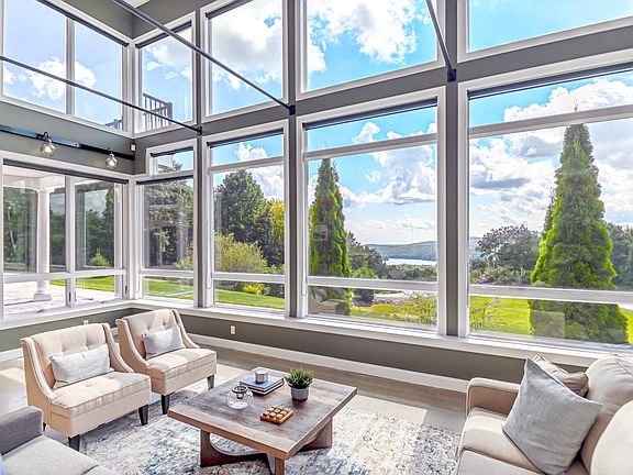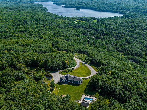 Nestled above the shores of Crescent Lake, this passive solar home is a remarkable retreat that seamlessly blends the beauty of nature w/ modern comforts. The heart of this home is undoubtedly the living room, boasting expansive views that can be admired through the 2 story wall of windows. The slightly elevated kitchen & dining room ensure unobstructed views while cooking & entertaining. A stone double-sided fireplace adds an element of rustic charm, creating a perfect atmosphere for large gatherings or quiet evenings in. Entertaining takes on a whole new level w/ the family room wet bar that accommodates seating for 6 & surround sound sure to set the mood. An expansive primary suite on the 2nd level takes full advantage of the view with a large private porch perfect for unwinding. The spa-like primary bath is the ideal sanctuary to relax at the end of the day with a jetted soaking tub & oversized walk-in shower. Want a separate sitting area, TV room or workout space? The large space off the primary suite can be any of these. 2 additional bedrooms overlooking the living room below share a Jack & Jill bathroom. Finishing off the 2nd level, the spacious in-law suite offers many options with an exterior entrance, deck & 270 degrees of nature views. A bonus room on the 3rd level provides many possibilities from an at home office, to den to additional guest space. Step outside & discover a true haven for relaxation. Feel your stress melt away as you lounge by the pool, cleverly heated by passive solar tubes, & soak in the large spa with lake and mountain views. For the consummate host, the pool house with its kitchen, outdoor counter & sleeping loft ensures that every gathering is effortlessly catered to. A true escape awaits beyond your doorstep, with 55+ acres of trails & 2 ponds at your disposal. Nature enthusiasts will revel in the chance to explore, while a barn offers ample space for equipment & wood storage. Conveniently located less than 45 minutes to Portland.
