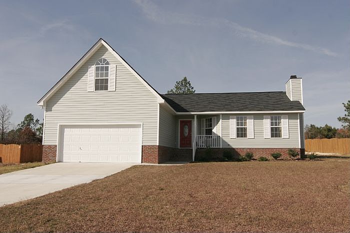 Professionally staged home!! Newly built home only eleven months new. Four bedrooms with a FROG (finished room over the garage) that has a closet. This room could be used as a fifth bedroom or office. The fourth bedroom has French doors and can be used for an office or formal dining room. The home sits on 0.53 of an acre. The living room has cathedral ceilings and a wood burning fireplace. This room is very open and lots of light comes through. The eat in kitchen has Formica counter tops and wood stained cabinets. There is all new lighting in the kitchen area. All bedrooms and bathrooms have new lighting. Master bedroom has French doors that go out onto a patio area. The private bath for the master bedroom has a garden tub and stand up shower. There is a spacious walk in closet in the master bedroom. The master has trey ceilings, which makes the room very open and spacious. Just off from the master bedroom is a closet set in the hallway for the laundry center. The house is carpeted w/ hardwoods and vinyl in the bathrooms and kitchen. The exterior patio is set off from the kitchen and master bedroom. The foundation is a slab. There is an attic pull down access and smoke detectors throughout the home. Continuous Clean, free standing, solid surface range stays with home. Dishwasher, disposal, and refrigerator come with the home. Cable TV available throughout the home. The garage is a two car garage with home access and exterior door access as well. The home faces east and allows for great sun exposure during the morning and great sunsets from the patio in the evening. The schools are brand new in our area. Our subdivision is directly across from the new Carolina Springs Middle School and just down the street from the new Carolina Springs Elementary School. White Knoll High School is less than 2 miles down the street and all the schools are Lexington One District schools.