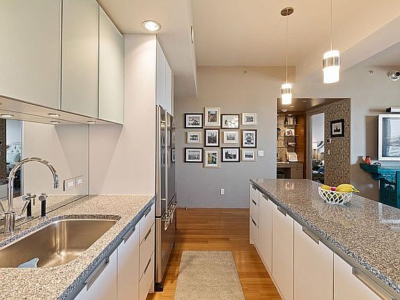 Check out this stunning 1-bed, 1-bath condo with garage parking at the Macallen, complete with a private covered balcony! With a bright Southern exposure, this well-designed home features an open-concept living and kitchen area no wasted space, just tons of storage. The sleek kitchen boasts a large island with a breakfast bar, a gas stove, and stainless steel appliances. The spacious living room is decked out with custom built-ins and stylish wall coverings, plus a built-in workstation with backlit glass shelving and extra storage. The large bedroom offers two massive closets, including a walk-in with locked storage and a full-size washer/dryer. Central AC. Enjoy top-tier amenities like a 24-hour concierge, on-site management, a residents' library/screening room, a fitness center, a lap pool, and a shared terrace with grills. Plus, one full garage parking space is included! First month, one month security and a one month broker fee due at lease signing. Don't miss out!
