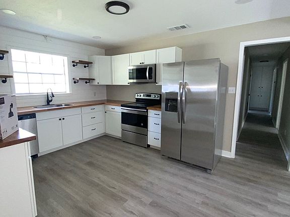 Completely remodeled 4 bedroom 2 bath brick home on 2.78 acres with a small pond in front yard. This home features two wood burning fireplaces, large family room, and a VERY spacious utility room. The kitchen has all new cabinets, countertops, and stainless appliances. Beautiful luxury vinyl can be seen throughout the house. The bathrooms have new cabinets, vanities, and fixtures as well. This is the perfect peaceful country living only 5 miles from town!