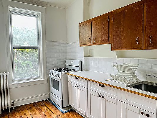 A beautiful sunny & spacious 1100 sq ft Floor Through Historic Townhouse apartment! If you want to live in a townhome on a quiet tree-lined street, with LOTS of space, this is for you! Features: -6 separate rooms (not including bathroom), so you can have a separate dining room, and office space and more! -Bay Windows on BOTH sides of the side, double paned -A beautiful set of barn doors -And a set of original pocket doors to the dining room -Spacious kitchen with real subway tile backsplash -All original hardwood flooring -All original ceiling and wall molding -Beautiful original arches in between each room -Two closets, one is a walk in closet! -Two ceiling fans -Larger Foyer at the top of the stairs for coat rack, bikes, shoe storage etc -Backyard view on one side, street view on the other -Only 1 flight up to apartment and apartment is the entire second floor of a historic townhouse -Very quiet street, and townhouse is right at the center of the block so its extra quiet! This house was built in 1910, and is very special since it is modernized but kept with all original features. This is a two family brownstone home, and you will be renting directly from the owner who lives in the separate apartment below. 5 mins to the Church Ave 2/5 trains, close to B44-SBS, B44, B35, B41, B46 Close to Prospect Park, Flatbush Ave, Kings County Hospital Neighborhood is Little Caribbean, which is a small neighborhood that is the meeting point of Prospect Lefferts Gardens, Crown Heights, Flatbush and East Flatbush Heat and hot water included. No Broker Fee! Start date is June 1st