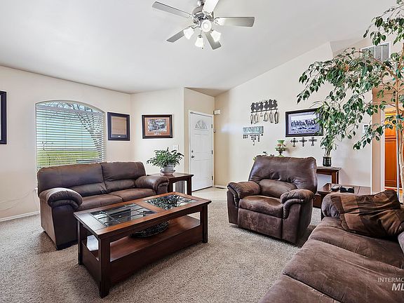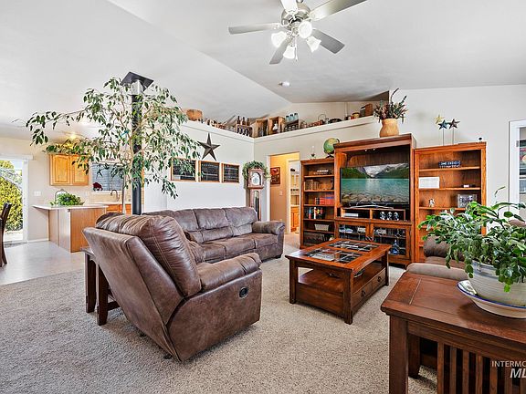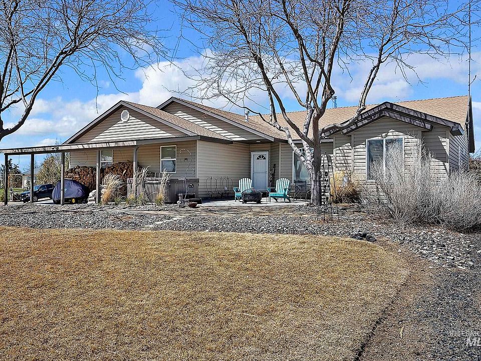 Gardener's Paradise on 1.19 acres. 4 bedroom, 2 bathroom, single level home with water shares and no CC&RS. Outside you will find a 20 x 60 greenhouse, tons of fruit trees (including apple, apricot, plum, peach & pear), chicken coop, plenty of parking for toys or RVs, storage shed, garden space, carport awning, attached gas BBQ, covered porch with hot tub and unobstructed pasture views. The home has an attached 2 car garage with a good amount of storage space. Inside you will find vaulted ceilings in the kitchen and living room, a wood burning stove (a supply of wood is included), central air conditioning and forced air natural gas heat. Master bedroom has private bathroom and walk in closet. With this property you get all the space and privacy you need, while being close to town. Setup a showing of this great country property today!