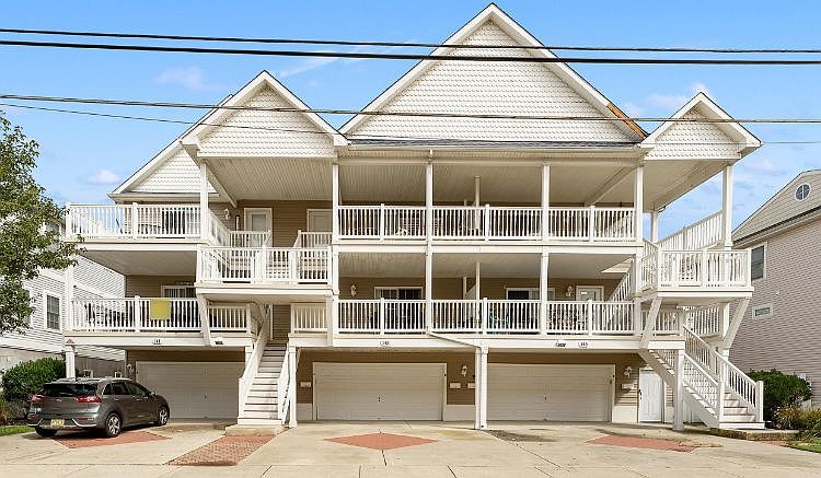 Beautiful first floor end unit condo on a quiet street. Enjoy the breeze under the covered porch as you sip your morning coffee or enjoy the sunset with your favorite beverage. The unit offers 3 nice size bedrooms, 2 full baths, fully equipped kitchen with a full-size refrigerator, gas stove, center island with seating, dishwasher and microwave. The dining area fits a large gathering comfortably. A 2-car garage and parking pad for a 3rd car, storage unit and a covered outside shower. Located close to the famous Wildwood Boardwalk, shopping and dining district. Hurry, the Wildwoods are waiting for you!!