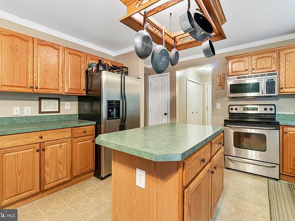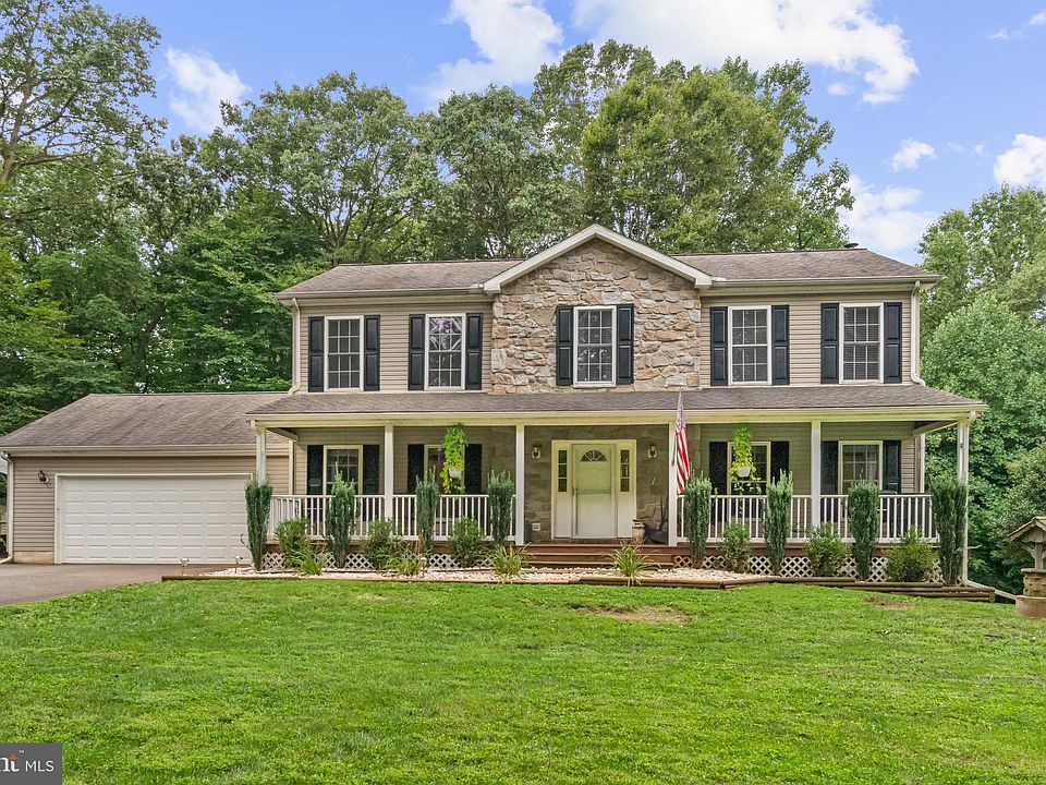 Beautiful colonial in a private country setting on an acre surrounded by trees. Large front porch, four sizable bedrooms, country kitchen with island and formal dining room, two and a half bathrooms, main level laundry, two car garage and a carport. Open foyer with hardwood floors, main level family room with woodstove and sliders to the deck. Full, unfinished basement with double doors to the outside.