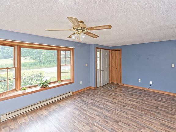 Country Living! This ranch style home has many of the major updates done for the next owner. Newly connected to sewer, new roof & 6 windows have been replaced in the last couple of months. Generous sized living room with a bay window that lets in great light, an entry closet & a ceiling fan/light combo. Open to a country kitchen with island and a slider to a HUGE screened porch that overlooks a large back yard. Tastefully updated bath with a solid surface counter & linen closet. Primary bedroom is extra-large (it was once two bedrooms) and the second bedroom is nice sized as well - both rooms have double closets. Full unfinished basement is walk out and has some great future potential. Warm air gas heat and gas hot water tank. Central air. One car garage under with auto door opener (2023). Water heater replaced in 2020. Amazing lot with great mix of trees for privacy and open space! All offers due by 5PM Friday July 28th
