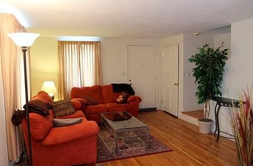 Adorable End Unit, bright full of light with replacement windows throughout! Fully furnished 2 Bedroom and 1 Bath Condo with gleaming hardwood floors. Cute kitchen with counter breakfast nook. Finished lower level that can be used as a wonderful family room. Rent includes heat, water, sewer, trash, snow removal, landscaping and swimming pool. Walk to new Harrington elementary school, MBTA bus, and bike path. SHORT TERM 6 MONTH RENTAL.