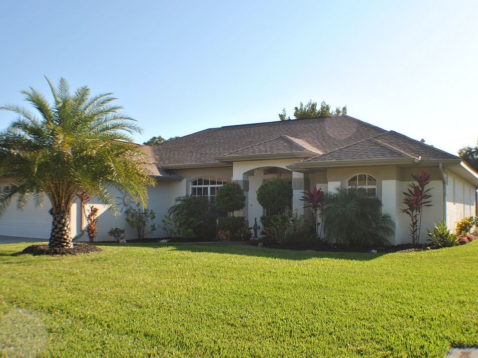 Stunning 3 Bedroom 2 Bath Home Located in Rotonda West on a freshwater canal in Pinehurst. Enter the home through double doors to the tiled foyer where you are greeted by cathedral ceilings, pocket sliding doors, plant shelves, pillars and open floor plan. The formal living/dining rooms are perfect for entertaining friends and family or for use as office space/den. Continue on to the kitchen with tons of cabinet/countertop space, large breakfast bar, newer appliances, plant shelves, island and an eating area with seamless aquarium glass overlooking the new large lanai with swimming pool. The kitchen opens to the family room with access to the lanai via sliding glass doors. There are 2 guest bedrooms with large closets, tray ceilings and separate guest bathroom. Separated by a pocket door to create a private guest area. Split from the rest of the home is the large Master Suite which offers tray ceilings, sliding glass doors to lanai, his/her closets, garden tub, double sinks and tiled Roman shower. There are 3 different sets of sliding glass doors to access the lanai area. In the lanai there is a beautiful one year old 14’ x 29’ heated saltwater pool with LED lighting, life time Pebble Tech finish and fountains. The large lanai also has beautiful new pavers, a relaxing hot tub and plenty of room to entertain. In addition the home offers freshwater irrigation system, beautiful landscaping and full security system with exterior cameras. Built to the latest building/hurricane code. Not located in a flood zone. Lanai /pool face east for those beautiful sunrises!