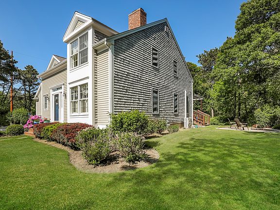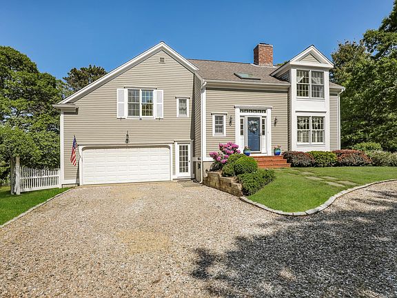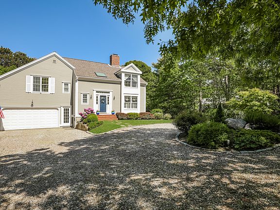 Beautiful Custom-built home in the sought after Far Fields neighborhood of Brewster. Park-like neighborhood perfect for morning and evening walks. This immaculate contemporary Cape is so inviting as you enter the foyer and drenched in the sunlight from the above skylight. The Livingroom and dining room are shared by a 2-sided fireplace for a lovely ambiance. There are 3 sets of sliders that open to an expansive two-level deck and platform ready for a hot tub. Adjacent to the house is a patio area featuring a fire-pit and fountain. The kitchen with many updates, Corian countertops, natural gas stove, newer appliances, hardwood floors throughout. New Roof, New chimney, and newer bathrooms. There are only 6 steps up the master bedroom suite level including a walk-in closet and laundry area for convenience. The master has elegant Brazilian cherry floors and plenty of storage. Six more steps up to the next level of 2 more BRs and full bath. All areas are full of sunlight. Walkout basement with plenty of storage, two-car garage and finished lower level TV room. House has split units for energy-efficient AC! The outside is a park to enjoy with mature plantings an also a path next door that leads directly to the bike path. This lot is very private and well as being close to Ferretti's market, restaurants, post office, coffee shops having the best of everything very nearby including Long Pond. Also, nearby Captains Golf course, Nickerson State Park and shopping along historic Route 6 A.