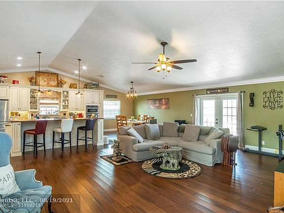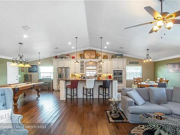 This Home is not to be missed! Beautiful home immaculately maintained with gorgeous newer remodeled kitchen boasting 42 inch custom cabinets, stainless steel appliances, granite granite counters and bar top island seating with mosaic tiles. Wood and tile flooring throughout home, volume ceilings with crown molding gives rooms a nice finished look, Nice open floor plan, hurricane impact windows, New hurricane rated garage door, a/c 2015, updated electrical panels. Entertain in this amazing beach themed back yard with saltwater pool system, and brick paver patio. Oversized corner lot!
