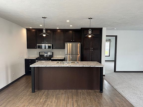 Brand new 3 bedroom, 2 bathroom home located at Fox Run in Boyne City. This home has full drywall, open floor plan, includes all appliances, over the range microwave, recessed lighting, central A/C, huge dining room, fantastic kitchen, with a huge island, walk-in pantry, washer and dryer, and a 10x10 storage shed.