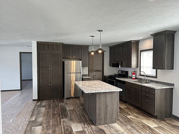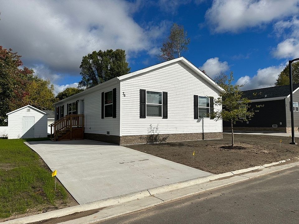 Brand new 3 bedroom, 2 bathroom home located at Fox Run in Boyne City. This home has full drywall, open floor plan, includes all appliances, over the range microwave, recessed lighting, central A/C, fantastic kitchen, with a huge island, washer and dryer, walk-in pantry, and a 10x10 storage shed.
