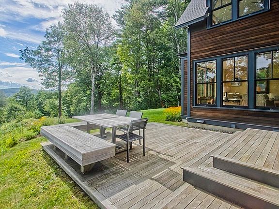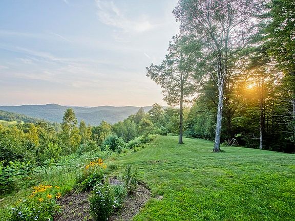 A unique countryside sanctuary is perfectly sited in a secluded and magical 74+/- acre setting overlooking sweeping hilltop views surrounded by a beautiful natural landscape. Award winning architect designed this finely crafted energy efficient home incorporating quality workmanship, gorgeous staircase & custom woodwork. The bright sunlit rooms create a warm and inviting interior and the oversized windows take full advantage of the scenic surroundings. The stunning kitchen has Crown Point cabinetry, Vermont soapstone countertops, charming built-ins & large sliding glass doors that lead to a deck. Additional features: living room with fireplace & wood stove; main bedroom with private full bath; 3 additional bedrooms & 2 full baths; central HVAC with heat pumps and fiber optic internet. Walking trails meander throughout the property connecting to miles of other trails. Potential building lot & private swimming pond are part of this special property. Near Shelburne Falls, 20 min I-9I.