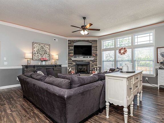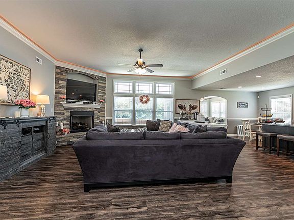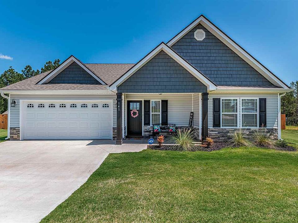 Welcome to your nearly BRAND new home which is less than one year old! This is the popular Franklin floor plan with a sunroom! It was fully upgraded and has many extras that the standard build does not have or offer, along with extra customizations. This beautiful, partial stone front home features 3 bedrooms and 2 bathrooms on a large 1/2 acre lot, with a huge backyard that is newly completely fenced in. A special feature is the French doors from the master bedroom that step out onto a big covered porch with a ceiling fan. Connected, is an extended concrete patio right up to the sunroom! Perfect for early morning coffee, evening cocktails, cookouts, entertaining, and to just retreat to relax in your sunroom. The master also has beautiful tray ceilings with a large walk-in closet. The master bath features granite counters and dual vanity sinks, jetted garden tub, huge tile shower with 2 showers heads, frameless door, and a bench seat. The main living area is very open concept with arched entries and a stone fireplace that looks off to your kitchen and sunroom. The flooring was upgraded to LVP throughout the main area. The kitchen is wide open to the living space with an eat-in area for your table as well as a breakfast bar. It also features Granite countertops and a farmhouse sink along with stainless steel appliances. The yard has a full irrigation system and a 12x20 outbuilding/shed built to match the home. There were anti-fog mirrors added in the bathrooms, and there are ceiling fans throughout the entire home. The list of the upgrades goes on and on. You must set up your showing today and come see for yourself before this one is gone!