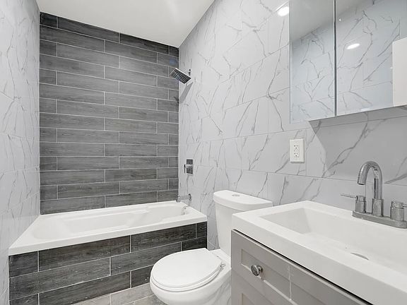 141 Glen Street is a luxuriously renovated, move in ready two family townhouse nestled on a beautiful tree lined street of City Line. This turn key, move in ready townhouse has undergone massive renovation by an expert team of contractors. Remarkable and classically gut renovated, 141 Glen Street will captivate you from the moment you arrive with its warm and welcoming energy. Perfect opportunity for buyers looking for space, plus income generating rental property to assist with mortgage payments. Configured as a 3 bedroom rental unit which has the ability to generate $3,000/month to assist with mortgage payments over a sprawling 2 bedroom garden unit which can easily be used as a garden-basement duplex to create additional living/recreational space. Both units enjoy expansive sun drenched open concept living/dining areas which provide great space for entertaining. Beautiful chefs granite kitchens equipped with floor to ceiling custom cabinetry and boast full sized stainless steel appliances. Spacious bedrooms with ample closet space and full ytiled bathrooms that boast state of the art wall & floor tiles. Renovations include brand new hardwood flooring, recessed lighting, electrical, heating and plumbing systems throughout. 141 Glen Street is conveniently located with close proximity to major transportation which makes commuting a breeze. Atlantic Avenue, Liberty Avenue, Crescent Street,Conduit Blvd, Fulton Street, restaurants, cafes, parks, bars schools, shopping centers & many other vibrant neighborhood amenities.