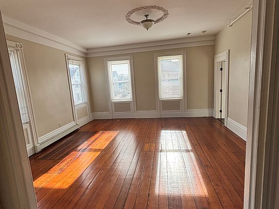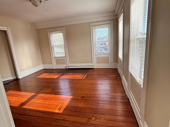 This is a spacious second floor 3 bedroom apartment with high ceilings and beautiful hardwood flooring. Coin-op washers and driers on site. No pets allowed. No smoking. No off-street parking. Sewer and water paid by landlord; heat, electric, telephone and cable TV by tenant. Background checks and verification of income required. First, last, and security deposit required