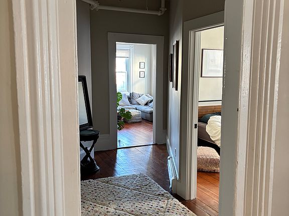Group showing Saturday, February 15th from 12:00-12:30PM This is a spacious second floor 2 bedroom apartment. Beautiful high ceilings throughout with hardwood and vinyl tile. No pets allowed. No smoking. No off-street parking. Coin-op washer/dryer onsite Sewer and water paid by landlord; heat, electric, telephone and cable TV by tenant. Background checks and verification of income required. First, last, and security deposit required