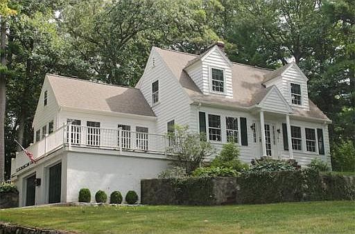 PERCHED ON A WOODED KNOLL, this welcoming Cape features lovely details throughout. Front to back living room boasts HARDWOOD FLOORS with a detailed mantel surrounding the fireplace The family room, currently used as a spectacular office, is drenched with natural light and filled with built in storage. This room also features a newly tiled mantel around a second fireplace. Dining room features a china hutch, spacious enough for family entertaining. The kitchen boasts wide pine floors, huge picture window & plenty of cabinet space. A mud room with PELLET STOVE leads to private and manicured 1/2 acre. The second flr offers THREE BEDROOMS and plenty of extra storage space. The LL is partially finished with a wonderful play room with charming built ins & recessed lighting. NEW HEATING SYS/HT WATER TANK, PLUS 2 CAR GAR & many other upgrades! This location is wonderful for commuters, just over a mile to commuter rail, 2 min to maj. routes & a short stroll to schools, park & YMCA!