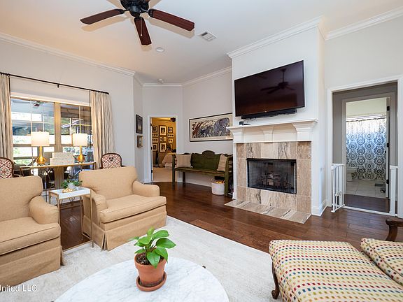 Fine Living in the Villages of Lake Caroline. This gracious 1 owner home has been meticulously maintained. Wood floors in main living areas, plenty of open gathering spaces and den with fireplace and hearth. Kitchen with granite counter tops and custom cabinets as well as separate eating area. Also an office nook off of the kitchen with built in desk. Spacious primary suite with plenty of room and a bath with dual vanities and separate soaking tub and walk-in shower. Step out on the screened back porch with a gas fireplace, two electric heaters, cypress ceilings and mantle. Admire the beautiful professionally landscaped private back yard and patio.