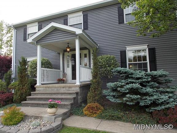 Gorgeous colonial with a beautiful setting! Large eat-in kitchen with fireplace, dining room, living room, and family room with 2nd fireplace. Doors to deck that overlooks lush yard with perennials. Master suite plus 3 more bedrooms and 1.5 more baths. Can easily expand over garage.